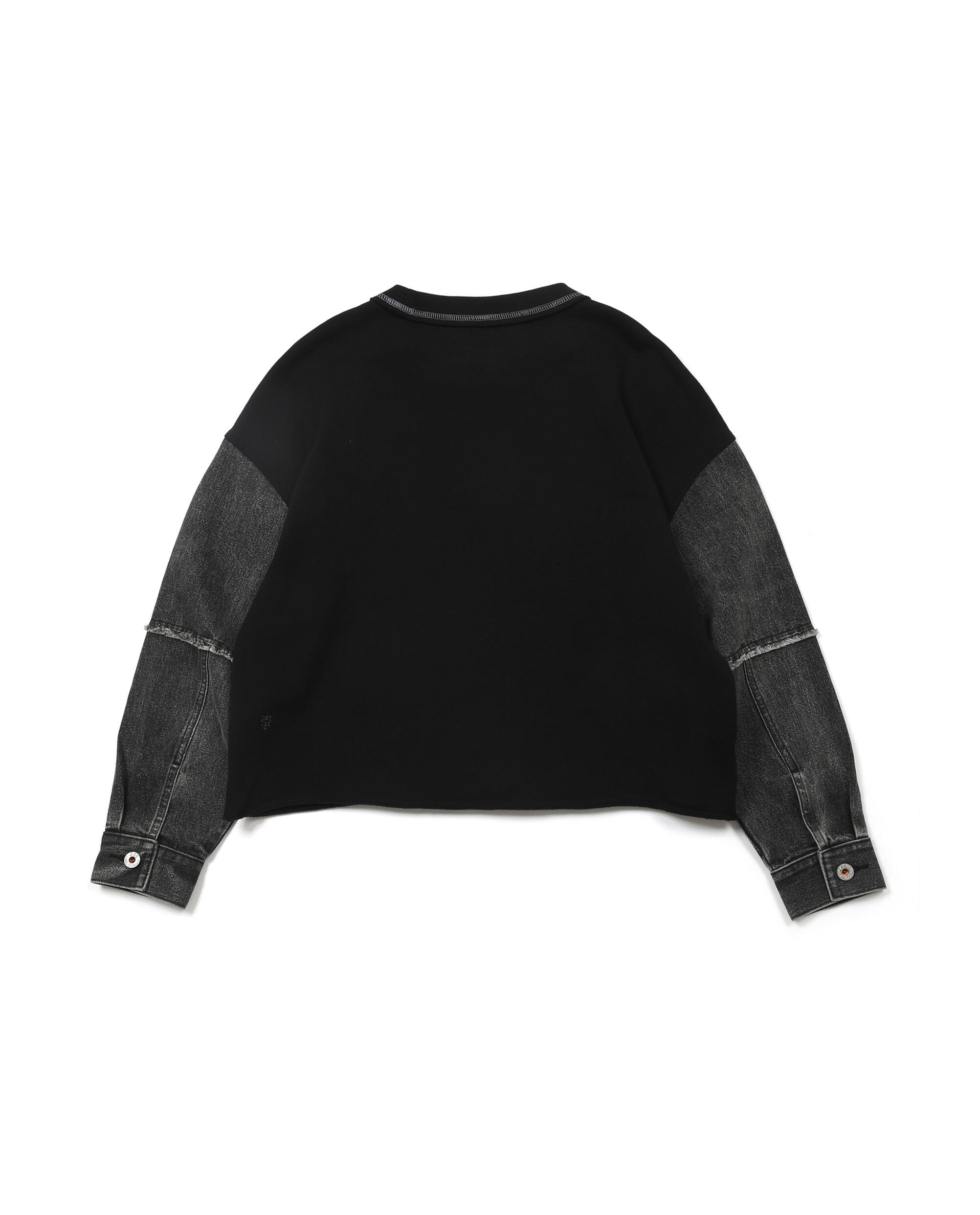 ● 黑色牛仔布拼接袖設計